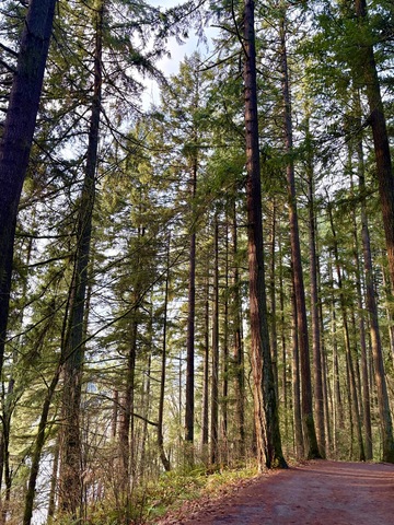As the year rushes to a close, like all good Pacific Northwesterners, I rush outdoors whenever there's a break in the chilly, gray winter drizzle. Walking is a big thing here. When the sun appears, big smiles on our faces, we hightail it to the nearest trail to inhale the fresh smells of a lake, the sharp fragrance of tall evergreens, the earthy scent of mossy trees and fallen leaves. For a few moments, day-to-day worries vanish. Until moving to the PNW three years ago, my happy place was a lush, crescent-shaped tropical beach. That's still my dream, but the lake and mountain trails here, dappled sun slanting through tall, tall trees, expand my insides in a way that feels fresh and invigorating.